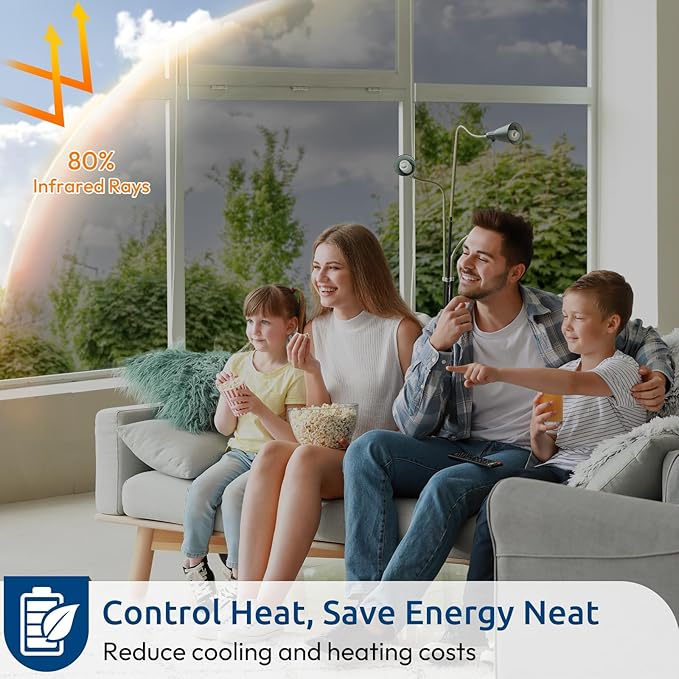 - Heat Control, Energy Saving: This heat control window film reflects 80% of infrared rays, reducing heat transmission through your glass. This home window tint is an economical way to stay cool in summer and retain heat in winter, helping you save money by lowering energy bills. Note: Do not apply on double-pane windows exposed to prolonged sunlight