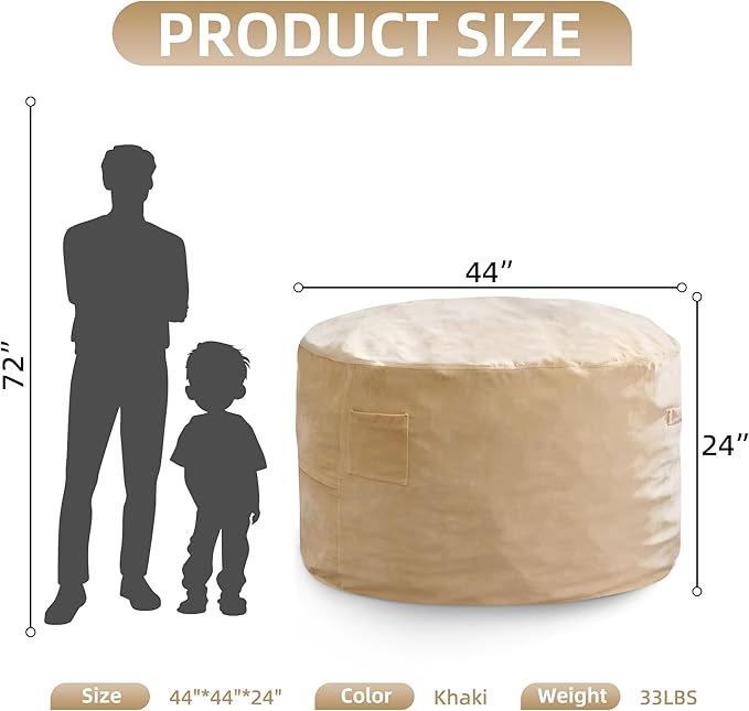 - Convenient Design: Our adult bean bag chair is designed with handle so you can move the giant bean bag chair wherever you want. The adult bean bag chair has a medium sized pocket on the side to store your phone, remote control, books and some small items. With the hidden zipper, you can remove the bean bag cover and throw it in the washing machine for cleaning.