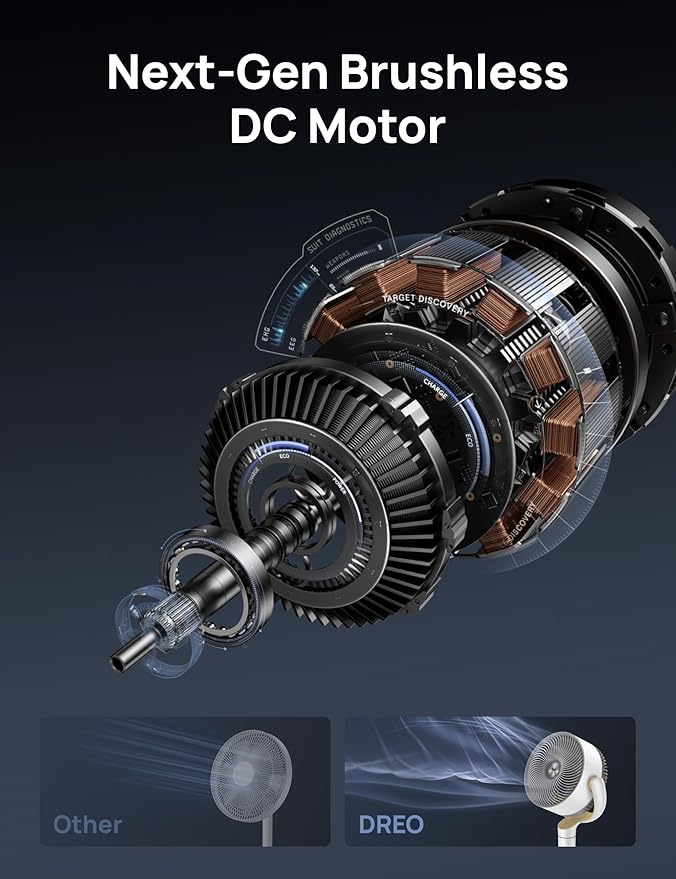 - ๐๐ก๐ฉ๐ง๐ ๐๐ช๐๐๐ฉ ๐ฟ๐พ ๐๐ค๐ฉ๐ค๐ง: Don't sacrifice performance for quietness, it reduces noise down to 20dB, making it the ideal quiet fan for bedtime or working without distractions. Thanks to the DREO brushless DC motor combined with turbine style blade technology, it circulates the air quickly throughout the room. And the DC motor produces 30% more air using 40% less energy.