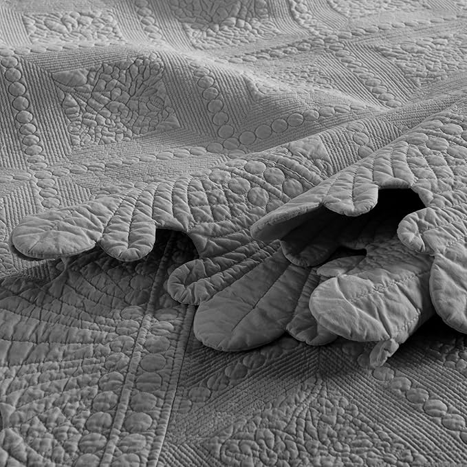 MarCielo 3-Piece 100% Cotton Oversized Bedspread Lightweight Quilt Coverlet Embroidery Farmhouse Bedding Set (Tk Light Grey, Oversized Queen (100"x106"))