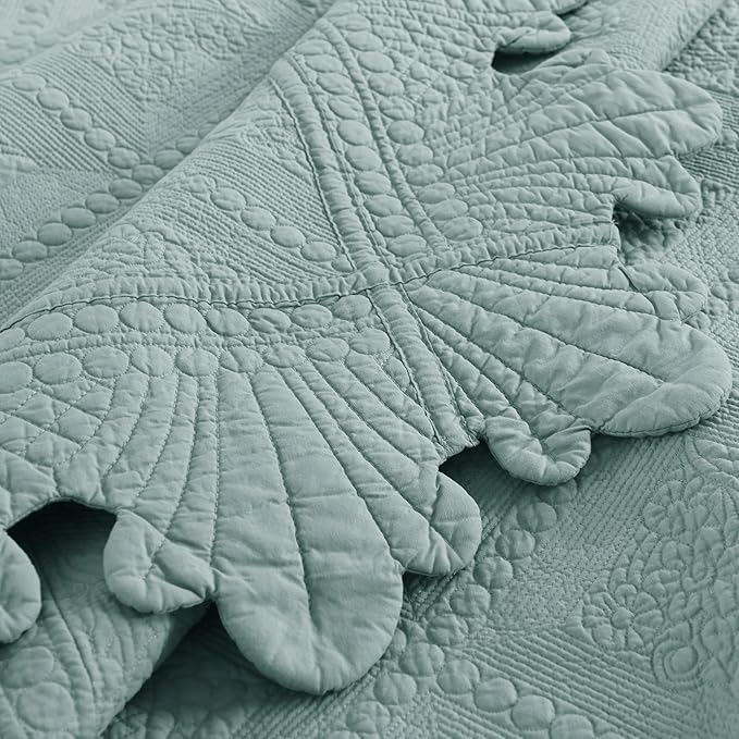 MarCielo 3-Piece 100% Cotton Oversized Bedspread Lightweight Quilt Coverlet Embroidery Farmhouse Bedding Set (Tk Aqua Green, Oversized King (118"x106"))