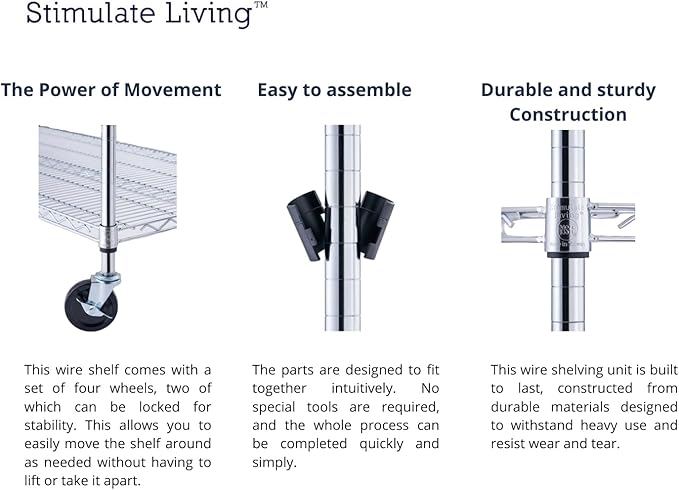 - ★EASY ASSEMBLY★ Our Stimulate Living Wire Shelving is designed with simplicity in mind, making assembly quick and hassle-free. You can easily set it up in no time and start using it immediately.