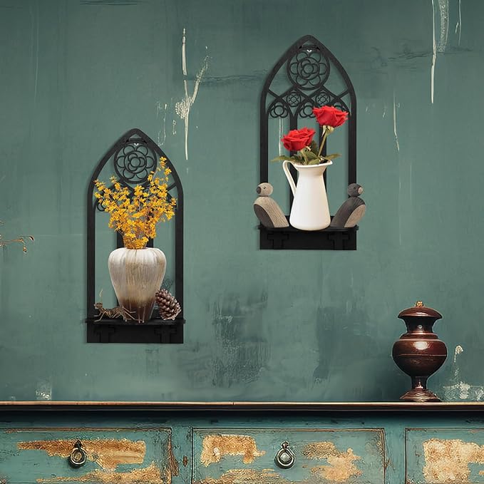 2 Pcs Gothic Sconces Wall Decor - Black Goth Arched Church Wall Art Gothic Home Decor for Living Room, Kitchen, Dining Room (Elegant)