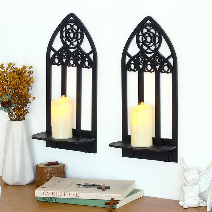 - Gothic Sconces Wall Decor Set of 2: Our gothic decor features exquisite patterns outlined with elegant lines, designed in a window shape with gothic style. Measuring 13x5.9 inches, our sconces wall decor set of 2 will be the perfect addition to your gothic home decor.
