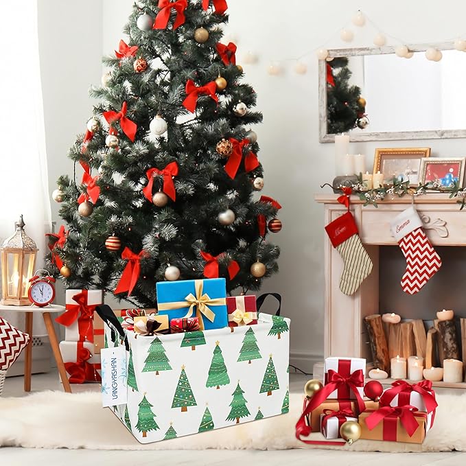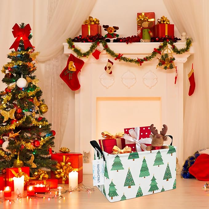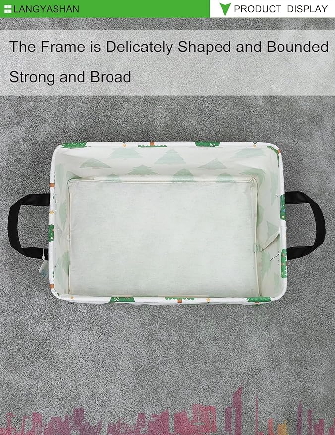 LANGYASHAN Rectangular Storage Bin Collapse Canvas Fabric Cartoon Storage Basket with Handles for Organizing Home Kitchen Boys and Girls Toys Office Closet Shelf Baskets (Rec christmas tree)