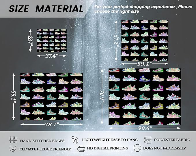 - Unique Design: This sneaker tapestry uses HD printing technology to bring the wall tapestry into your home. The distinct colors will become the focus of your family and friends.