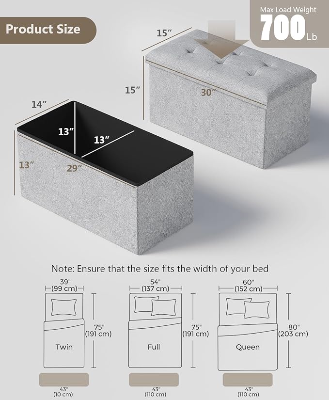 - [Stylish and Sturdy] This storage ottoman features stylish linen-look fabric with fine stitching. Metal corner guards help reinforce the lid and thick MDF boards support the tops and sides, allowing the ottoman to hold a static load capacity of 700 lb
