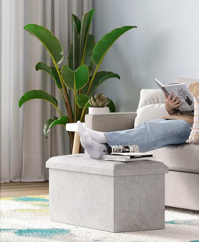 Storage Ottoman Bench, Folding Ottoman Foot Rest, 15 x 30 x 15 Inches, End of Bed Bench, Storage Chest, for Living Room, Bedroom, Hallway, Entryway, Light Gray