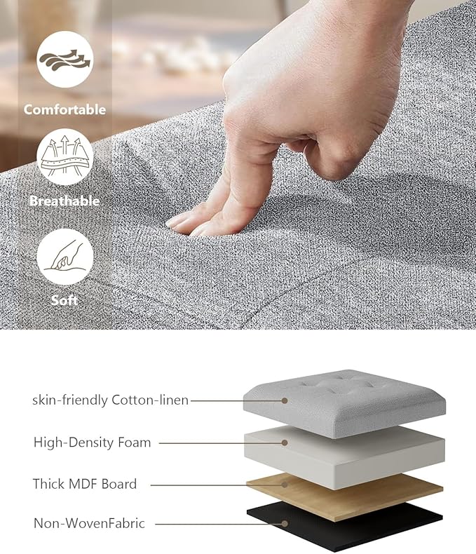 - [Comfortable Seating] Filled with high-density foam and covered in linen-look fabric, this storage bench provides a soft, supportive, and breathable seat for optimal comfort