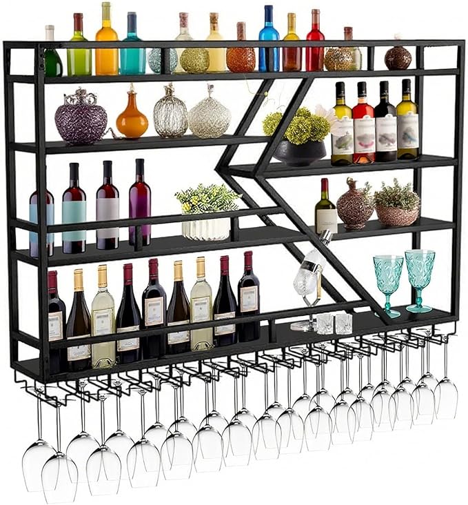 - VERSATILE DISPLAY: Multi-functional shelving perfect for wine bottles, stemware, and decorative items, ideal for home bars, restaurants, or entertainment areas