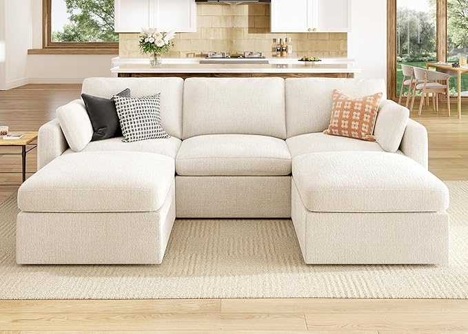 HONBAY Sectional Couch with Storage Seats, Modular Sectional Sofa with Storage Ottoman, U Shaped Sectional Couches for Living Room,Beige
