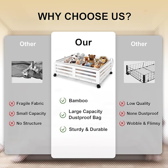 - 【360° Rotating Wheels】Features detachable wheels for easy sliding in and out from under the bed; convenient access in tight spaces