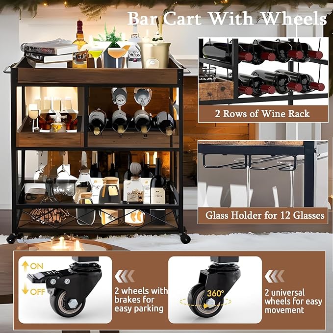 - 【Multifunctional Cart】In addition to being used as a bar servicing cart, it can also be used as a kitchen cart, coffee cart, drink cart, microwave stand cart. This is an ideal solution for family gatherings, outdoor barbecues, weddings, and other events.