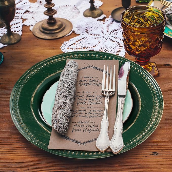 - Vintage Elegance: Enhance your dining table decor with our Hunter Green Plate Chargers, featuring a classic Baroque design that adds a pop of color, perfect for special occasions like Thanksgiving and Christmas.