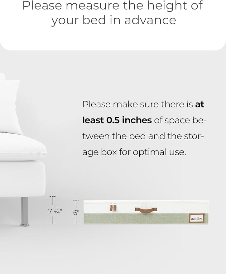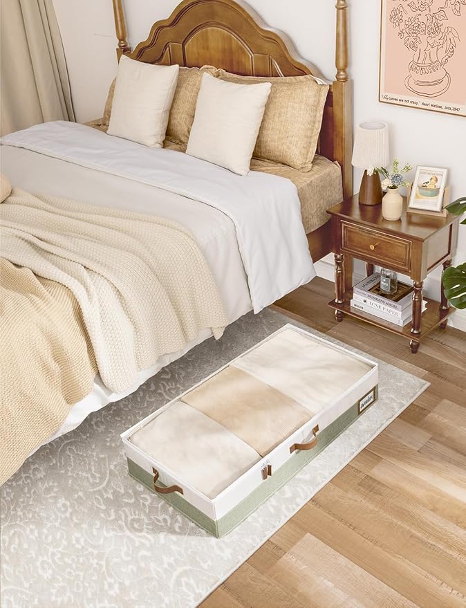 - Underbed storage box featuring thick PU handles on 3 sides for easy accessing, carrying, and retrieving.