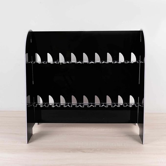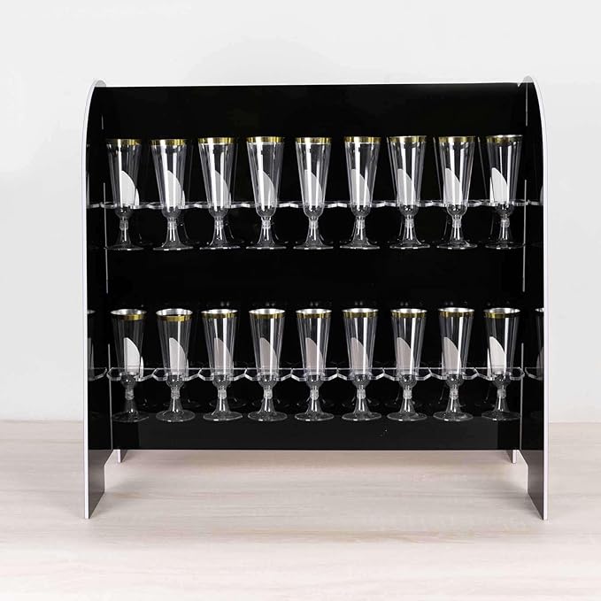 Tableclothsfactory Black Mirror Finish 2-Tier Wine Glass Stemware Rack, 18 Champagne Flute Holder Foam Board Stand - 25"