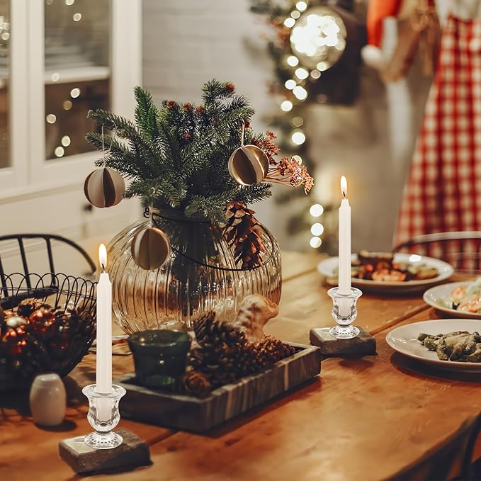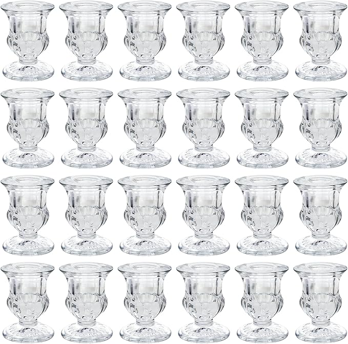 - Glass Candle Holder Set:The glass candle holder set includes 24 delicate glass candle holders,You can simply decorate your table with glass candlestick holders or match them with candles of different colors or heights for various occasions