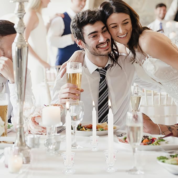 Glass Candle Holders Set of 24- Clear Candlestick Holders & Taper Candle Holders for Wedding Centerpiece Table Decorations, Valentines Day Decor, Party and Romantic Dinner