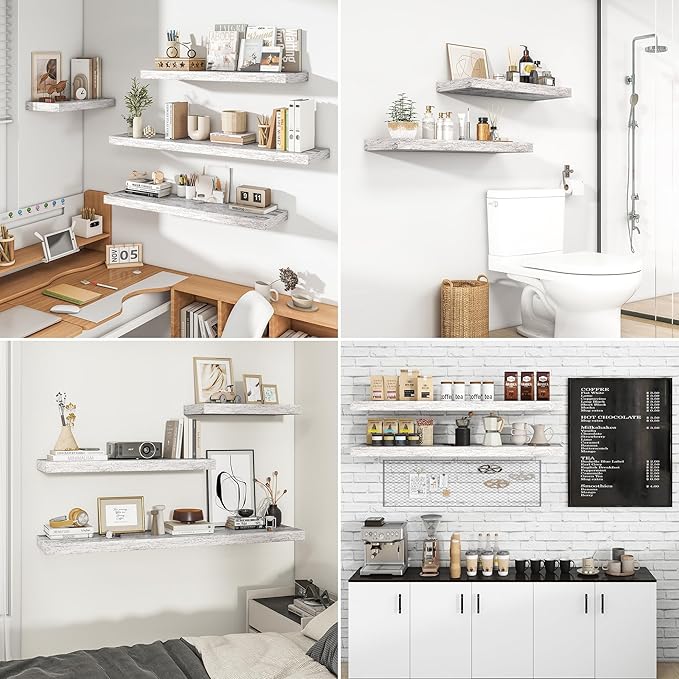 - Multi-scene & Functional: Use as bathroom shelves perfect storage of beauty, hair products or aromatherapy. Mount in the bedroom to hold your books, cosmetics and personal privacy things. Mount in the kitchen to hold spices and jars. Or as a display shelf mount in the living room to show your picture frames, trophies or favorite collection. Use as book shelf for wall, over the toilet shelf, kitchen floating shelves, wall shelves for living room, display shelf, and more