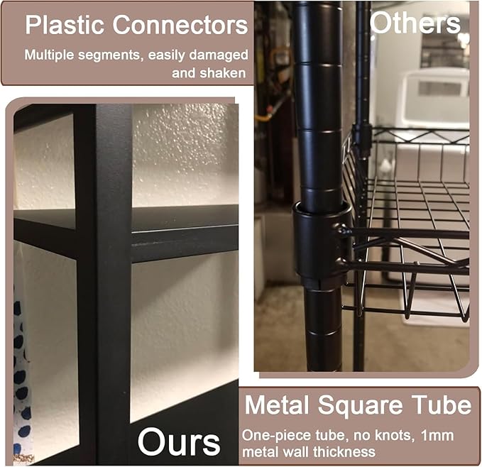 - Enhanced Stability with Adjustable Feet: The shelf includes adjustable rubber feet that help stabilize it on uneven floors. Additionally, the back of the unit comes with four nails to securely mount the shelf to the wall, providing extra stability and safety.