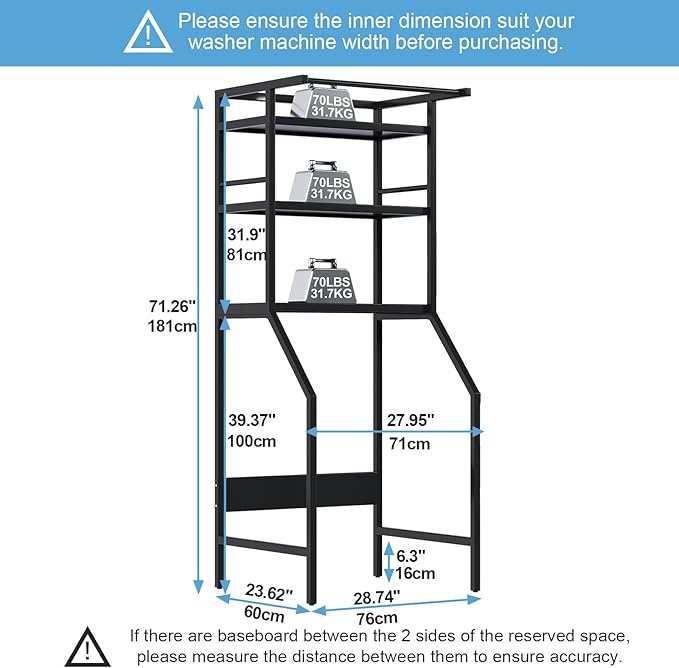 - Designed for Front-Load Washers and Dryers: With an internal width of 27.95 inches, this unit is specifically designed to fit over most front-load washers and dryers. Please confirm the dimensions of your washer or dryer before purchasing, as it is not compatible with top-load models.