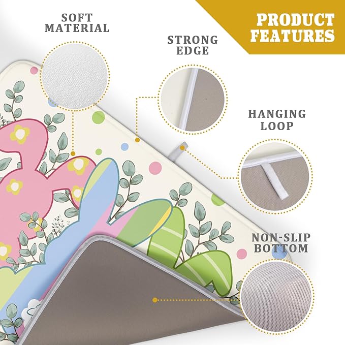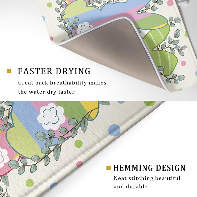 - 【Perfect Size】This Easter dish drying mat measures 18 x 24 Inch. Fits most kitchen countertops,while providing a smart,sharp look.