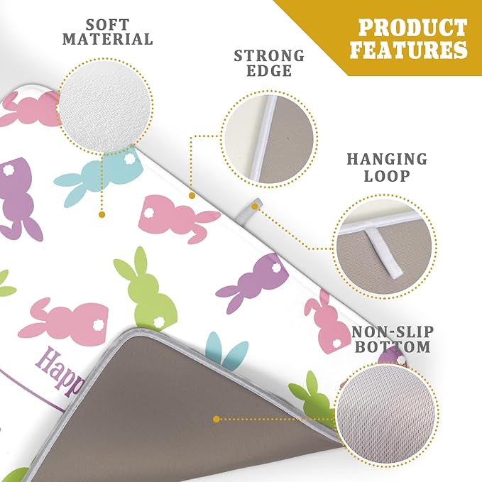 - 【Perfect Size】This Easter dish drying mat measures 18 x 24 Inch. Fits most kitchen countertops,while providing a smart,sharp look.