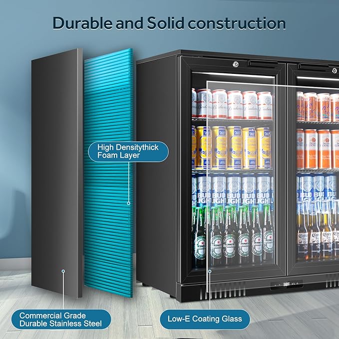 - 【Rapid Cooling】Equipped with 2 air circulation fans, this display refrigerator swiftly circulates cold air within, ensuring your beverages reach optimal drinking temperature