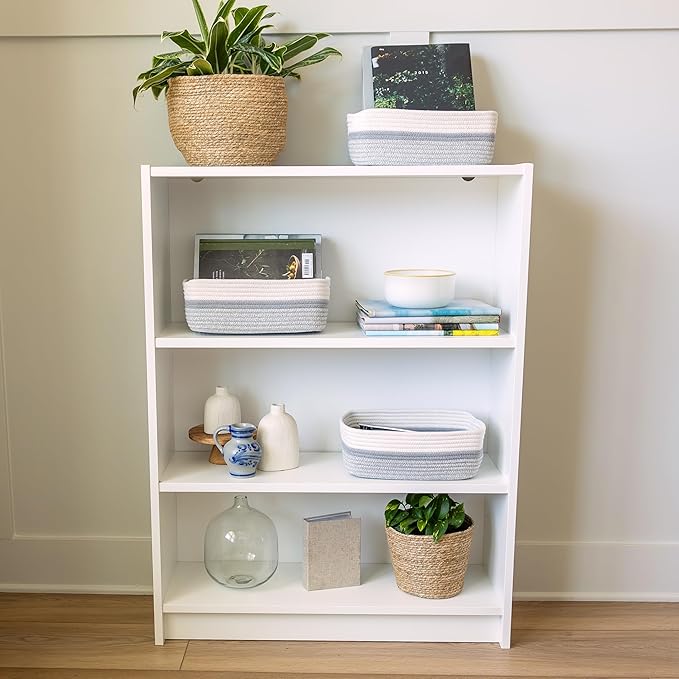 NaturalCozy 11.8"x8"x4.5” Storage Baskets for Shelves 3 Pack | Cotton Rope Woven Small Baskets for Organizing | Small Storage Bins for Nursery, Bathroom, Closet, Cube Shelf, Decorative, Gift Basket