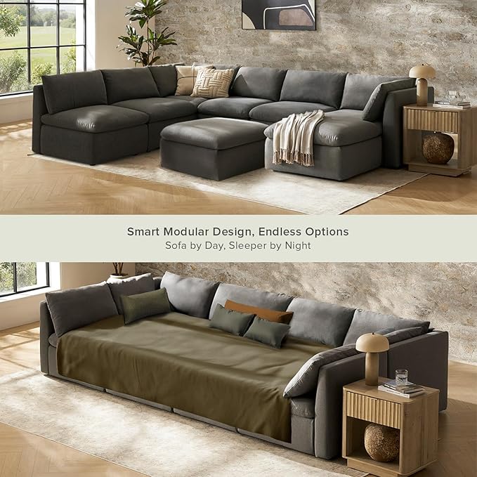 mopio Oversized Modular Sectional Sofa with Fully Removable Covers and Storage, Convertible U, L-Shaped and Sleeper Sectional, Modern Couches with Ottoman Chaise (Stone Gray Fabric, 8 Seats, Sleeper)