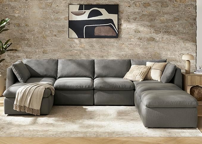 mopio Oversized Modular Sectional Sofa with Fully Removable Covers and Storage, Convertible U, L-Shaped and Sleeper Sectional, Modern Couches with Ottoman Chaise (Stone Gray Fabric, 7 Seats, U)