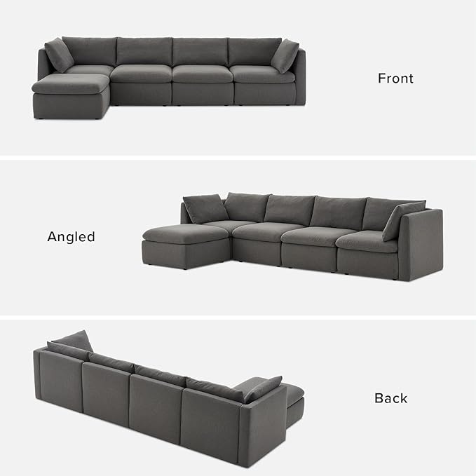mopio Oversized Modular Sectional Sofa with Fully Removable Covers and Storage, Convertible U, L-Shaped and Sleeper Sectional, Modern Couches with Ottoman Chaise (Stone Gray Fabric, 5 Seats, L)