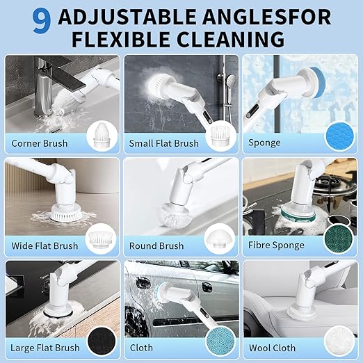 - Ultimate All-in-One Cleaning Tool: This electric spin scrubber is perfect for a variety of cleaning tasks. With 8 replaceable brush heads, it efficiently tackles bathroom tiles, tubs, showers, and even car interiors. Ideal for busy families, homeowners, and car enthusiasts seeking a versatile cleaning solution.