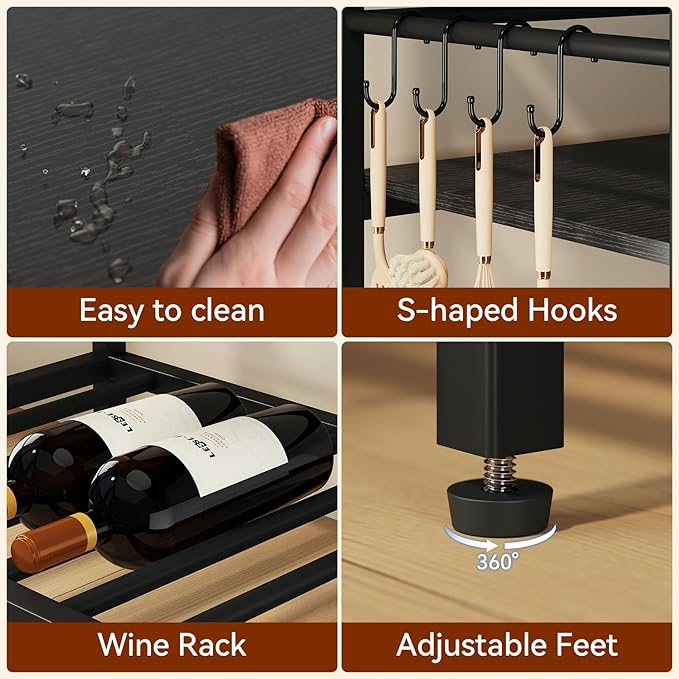 - Excellent stability: Each partition has strong load-bearing capacity. In addition, the kitchen island platform is equipped with four adjustable feet to maintain balance even on uneven surfaces.