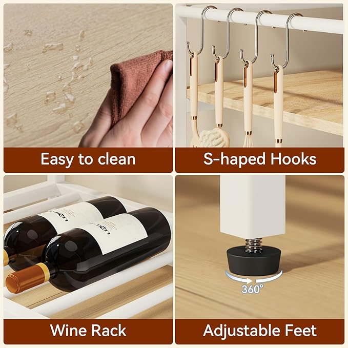- Excellent stability: Each partition has strong load-bearing capacity. In addition, the kitchen island platform is equipped with four adjustable feet to maintain balance even on uneven surfaces.