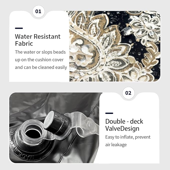- 【EASY to INFLATE】 - Begin by placing the inflatable component into the cover prior to inflation. Utilize the foot pump to inflate it to approximately two-thirds of its size, then zip the cover halfway. Continue inflating until fully expanded and securely zip it closed. Ensure that the valve is properly sealed