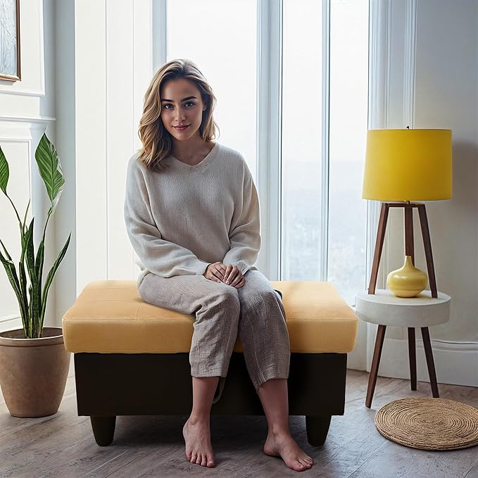 - BENCH OTTOMAN: This adaptable storage ottoman functions as a comfortable bench, perfect for entryways, living rooms, and bedrooms. Blending style with practicality, it offers both seating and storage in one stylish piece. Sit down and enjoy the ideal mix of comfort and convenience this bench ottoman provides.