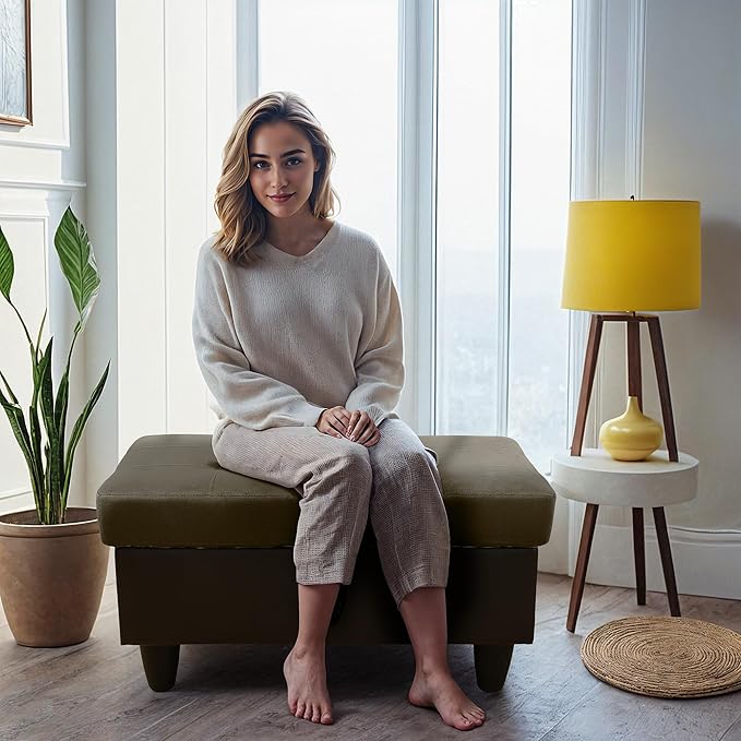 - BENCH OTTOMAN: This adaptable storage ottoman functions as a comfortable bench, perfect for entryways, living rooms, and bedrooms. Blending style with practicality, it offers both seating and storage in one stylish piece. Sit down and enjoy the ideal mix of comfort and convenience this bench ottoman provides.
