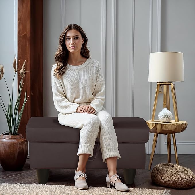 - BENCH OTTOMAN: This adaptable storage ottoman functions as a comfortable bench, perfect for entryways, living rooms, and bedrooms. Blending style with practicality, it offers both seating and storage in one stylish piece. Sit down and enjoy the ideal mix of comfort and convenience this bench ottoman provides.
