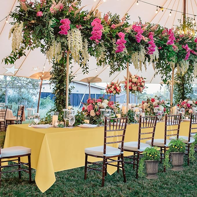 Fitable 6 Pack Yellow Rectangle Table Clothes - 70 x 120 Inch - Wrinkle and Stain Resistant Fabric Tablecloths, Washable Polyester Table Covers for Wedding, Party, Banquet, Formal Events
