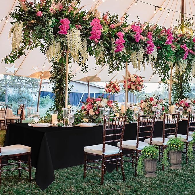 Fitable 6 Pack Black Rectangle Table Clothes - 70 x 108 Inch - Wrinkle and Stain Resistant Fabric Tablecloths, Washable Polyester Table Covers for Wedding, Party, Banquet, Formal Events