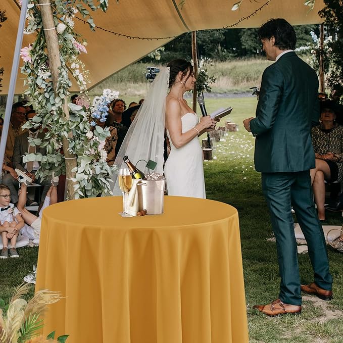 Fitable 6 Pack Gold Round Tablecloths - 108 Inches Round - Wrinkle and Stain Resistant Fabric Table Clothes, Washable Polyester Table Covers for Wedding Party Banquet Formal Events Fall Thanksgiving