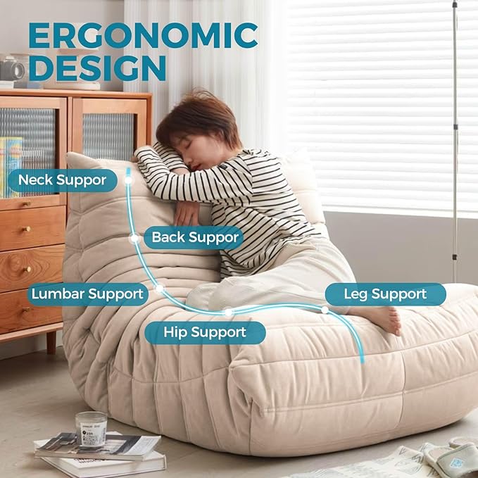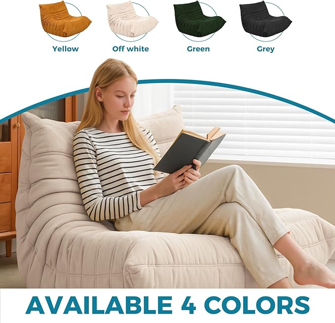 - Versatile Design: This modern bean bag chair offers a stylish and comfortable seating option for any living room, bedroom, or dorm room.