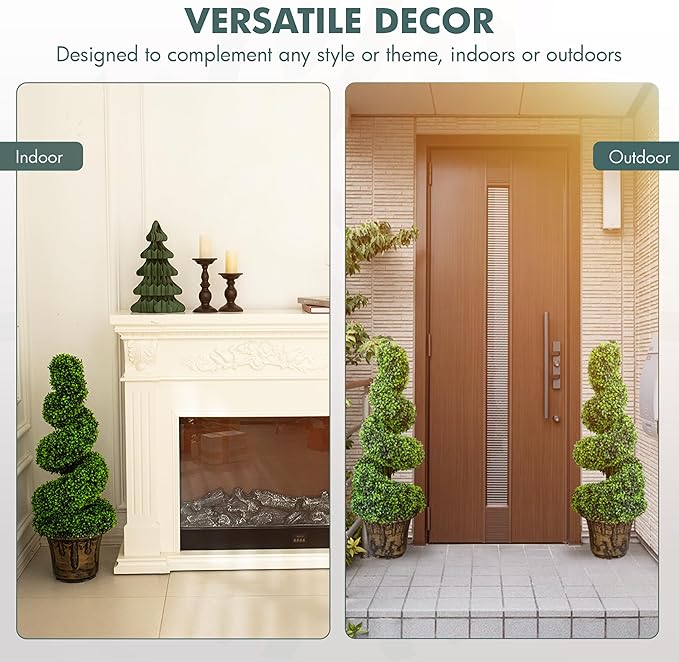 - LIFELIKE APPEARANCE - This artificial boxwood spiral topiary tree features lush, vibrant foliage that mimics the look and texture of real boxwood plants.