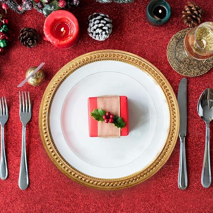 - Mess-Proof Dining: Our charger plates effectively prevent spills by placing them underneath salad plates, soup bowls, and dinner plates, helping to maintain a clean and elegant dining experience while adding a touch of charm to your table.