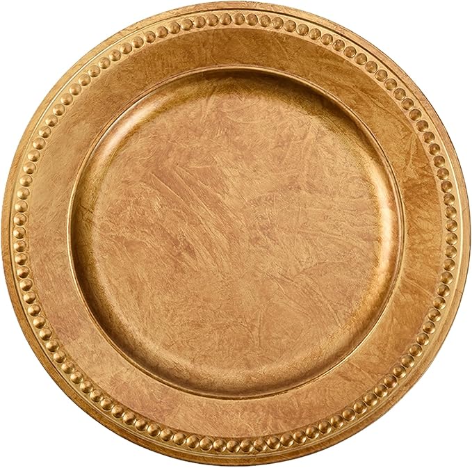 - Vintage Elegance: Enhance your dining table decor with our Round-Brownish Gold Plate Chargers, featuring a classic Baroque design that adds a pop of color, perfect for special occasions like Thanksgiving and Christmas.