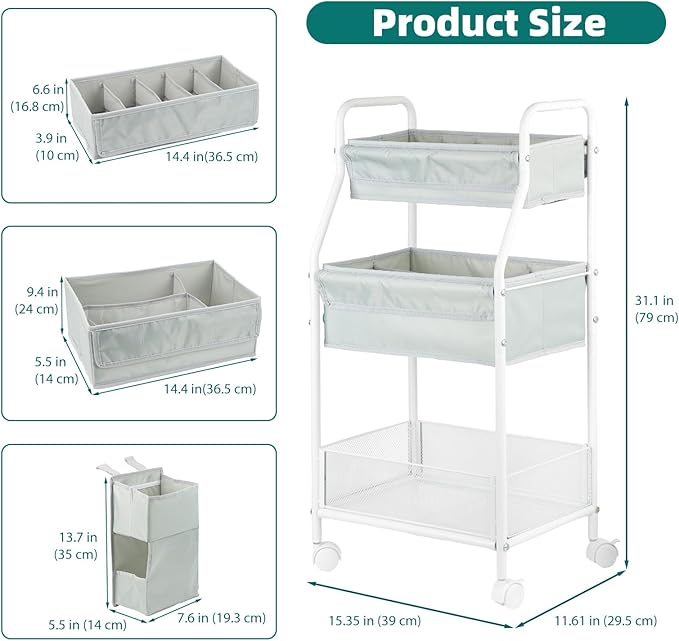 - Premium Materials & Stylish Design: Made with durable fabric and PP plastic, this storage cart is both sturdy and modern and perfect for room organizers and storage or baby nursery essentials.