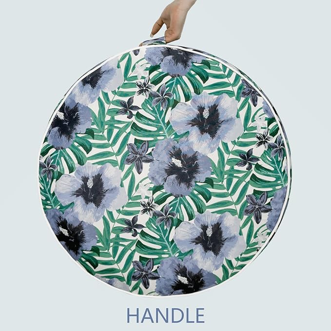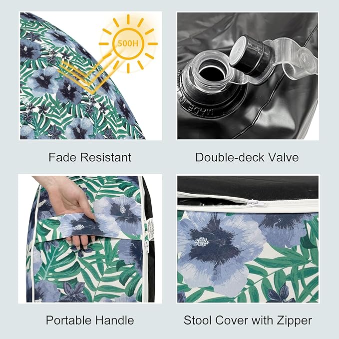 LVTXIII Indoor/Outdoor Inflatable Ottoman, D31 x H14 Inch Large Round Ottoman, All Weather Foot Rest Stool, Portable Footrest for Patio, Garden, Camping and Home - Blue Salmone Tropical