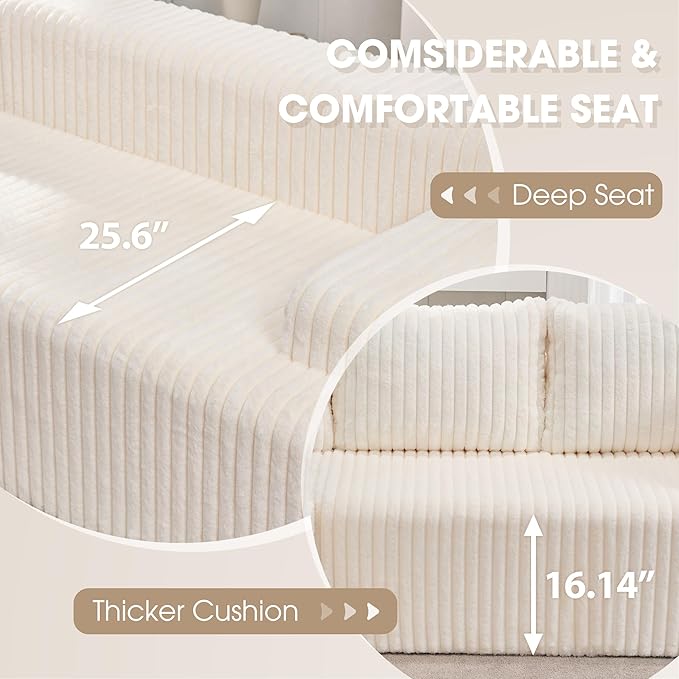 - Comfortable Sectional Couch: The cloud couch is made of breathable fabric and high-resilience memory foam with removable back cushion and neck pillow, providing you with a super comfortable experience. The anti slip design at the bottom ensures the stability of the sofa. The comfy sofa cover is machine washable and can be cleaned when dirty.