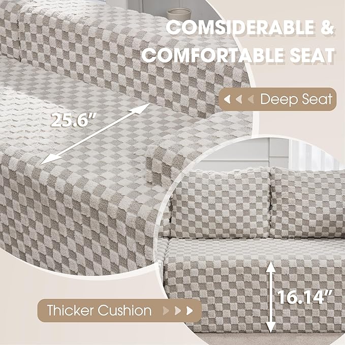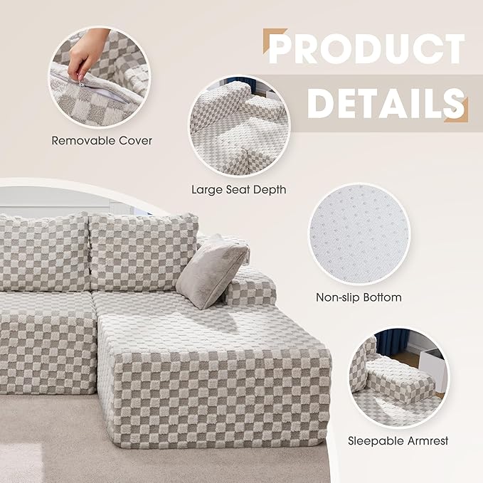 - Comfortable Sectional Couch: The cloud couch is made of breathable fabric and high-resilience memory foam with removable back cushion and neck pillow, providing you with a super comfortable experience. The anti slip design at the bottom ensures the stability of the sofa. The comfy sofa cover is machine washable and can be cleaned when dirty.
